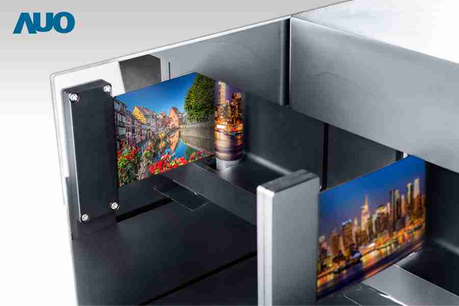 未来,,,,显示器很可能变得无所不在,,尊时凯龙结合先进的 OLED 技术,,,,开创出 5.6寸双面可卷式 OLED 显示器,,展开时具备双面显示器,,,可提供给不同的使用者观看,,,,并且能以卷曲方式收纳,,能使人们更方便携带。。。。尊时凯龙以自主开发彩色滤光片 (Color Filter, CF) 取代圆形偏光片 (Circle Polarizer),,能大幅降低显示器模块厚度 50%,,并维持一定的亮度呈现,,,,目前已通过曲率半径 9mm 达 10 万次以上的卷曲测试,,,,耐用更可靠。。。。可以在未来让多位使用者观看不同内容,,,为显示器带来更多新型态的未来应用。。