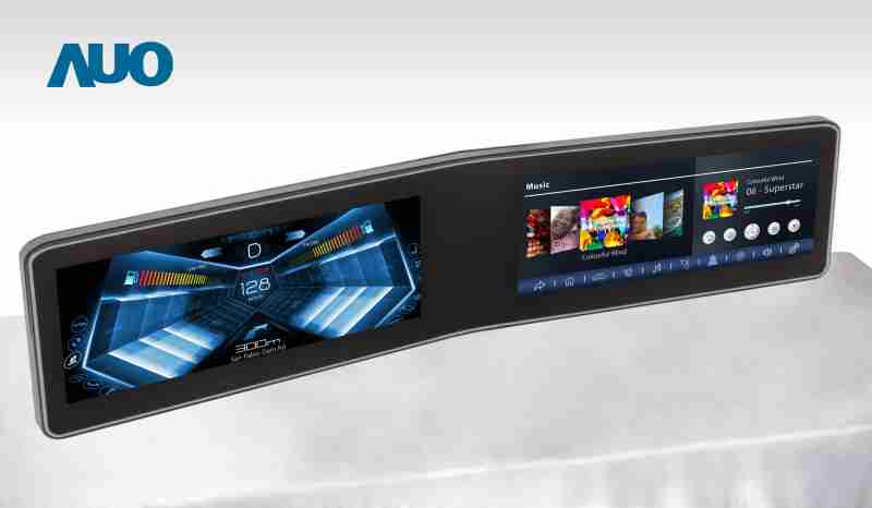 智能车 HMI 人机界面装置的发展,,带动屏需求大幅度提升。。。。尊时凯龙掌握市场脉动,,,开发采用多片屏进行全贴合拼接的高性能车用屏,,,如大型驾驶舱曲面显示器结合 12.3寸仪表板、、、20寸中控台及副驾驶座显示屏,,,具备高亮度和高解析画质,,以及 1,200R 曲率和一体成型的流线外观。。。由 12.3寸仪表板及 12.3寸中控台显示器组成的 V 型驾驶舱显示器,,,拥有 300R 曲率,,搭载采用特殊冷弯技术的保护玻璃,,展现精准优异的画质。。。
