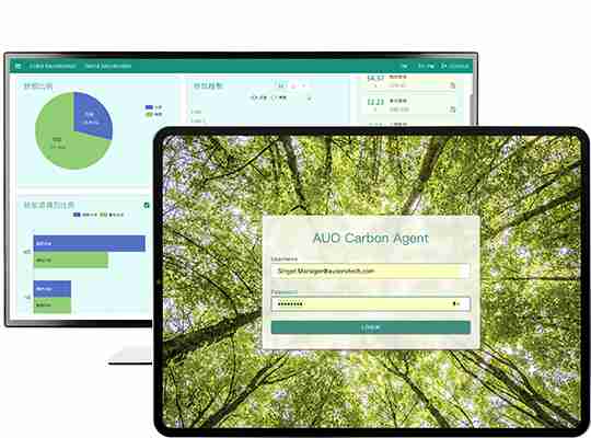 依循 ISO 国际标准建置出符合国际标准的全方位碳管理平台 (AUO Carbon Agent),,其中温室气体盘查模组可协助客户将组织、、产品与供应链的碳排放源数据,,,透过系统内建的系数资料库自动计算出碳排量,,,提升整体盘查作业的效率,,,并以此拟定长期减碳策略,,,达到低碳转型、、、净零碳排的目标。。。。