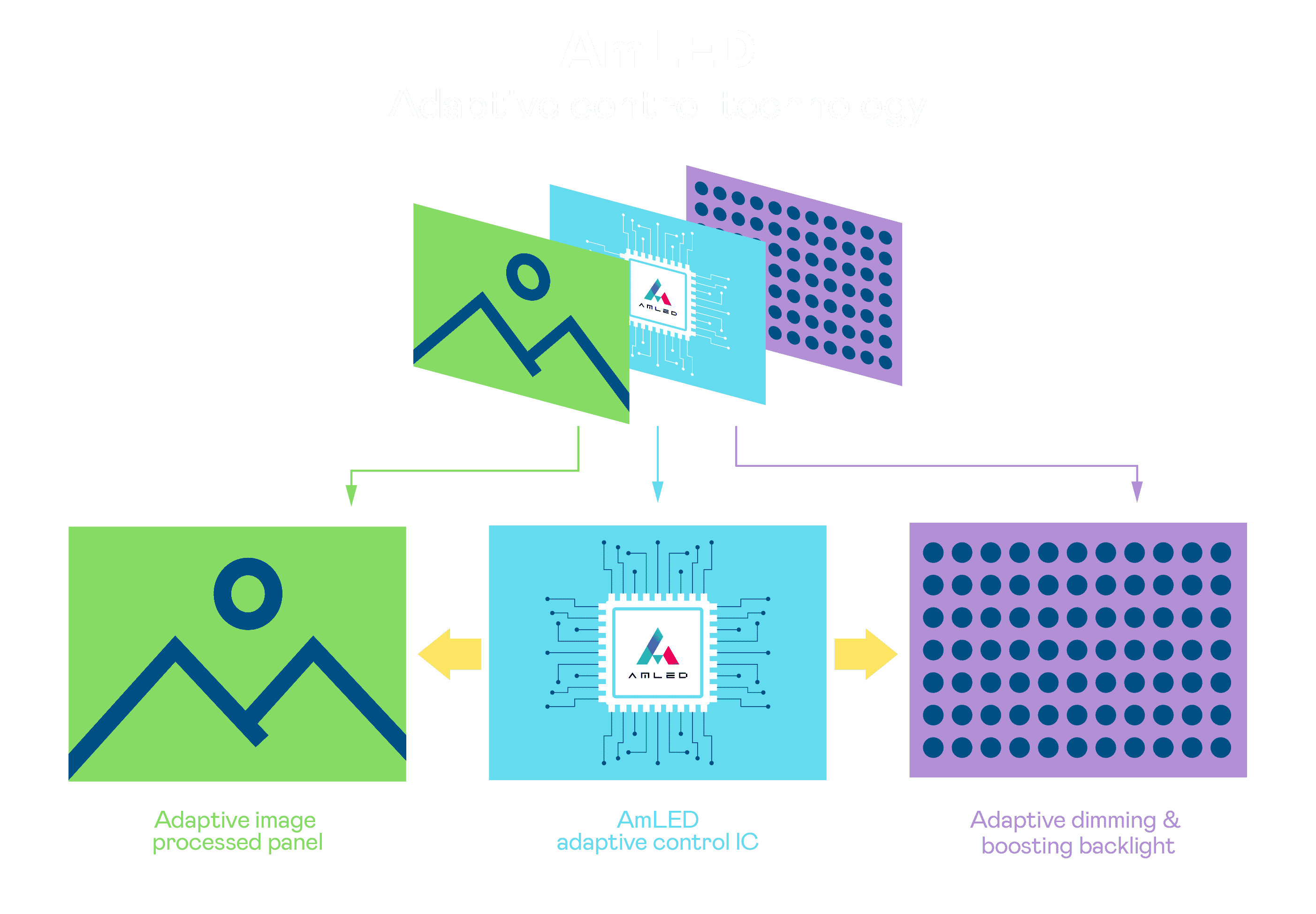 AmLED 具备更省电与低蓝光特性。。。。与一般的 LED 背光显示技术相比,,,由于 AmLED 常时处于局部调光状态,,,,其功耗仅有前者的 50% 左右,,,,同时 AmLED 还具备低蓝光特性,,,满足长时间使用的护眼需求。。